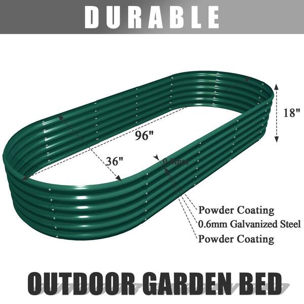 8 x 3 x 1.5 ft. Green Oval Galvanized Metal Outdoor Bottomless Raised Garden Bed for Vegetables Flowers 1-Pack