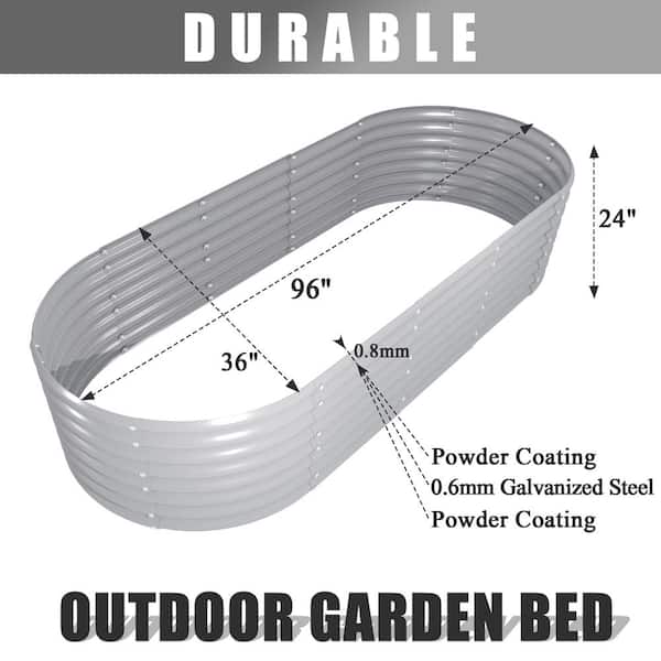 8 x 3 x 2 ft. Light Grey Oval Galvanized Metal Outdoor Bottomless Raised Garden Bed for Vegetables Flowers 1-Pack