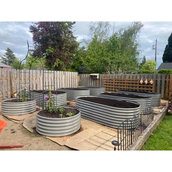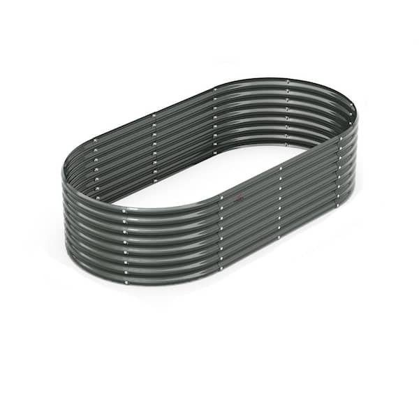 8 x 4 x 2 ft. Metal Oval Outdoor Raised Garden Bed for Planting Vegetables Flowers Herb, Gray