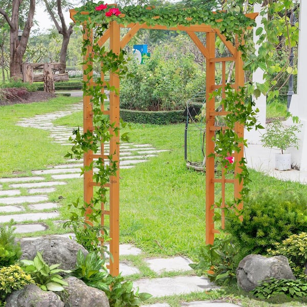84.5 in. x 55 in. Nature Wood Garden Arbor Outdoor Garden Arch Trellis for Wedding, Ceremony and Climbing Vines