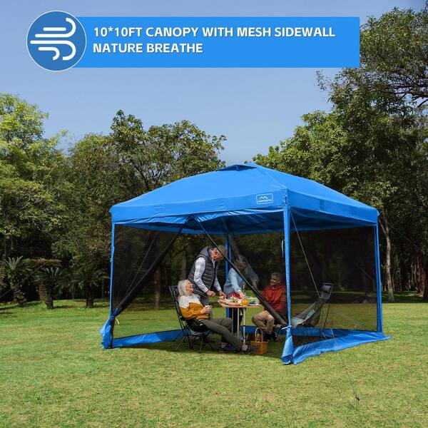 9.5 ft. x 9.5 ft. Light Blue Outdoor Pop Up Screened Canopy Tent with Netting Mesh Walls Sandbags and Roller Bag