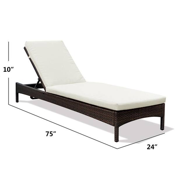 Adjustable Wicker Outdoor Chaise Lounge Patio Poolside Reclining Folding Backrest Lounge Chair with Beige Cushions