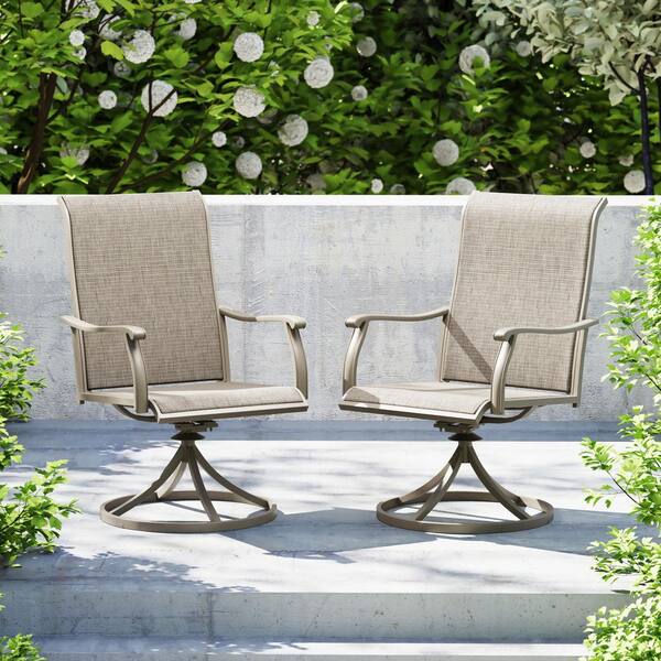 Beige Metal Outdoor Dining chair with 360° Swivel Sling in Sandshell Set of 2
