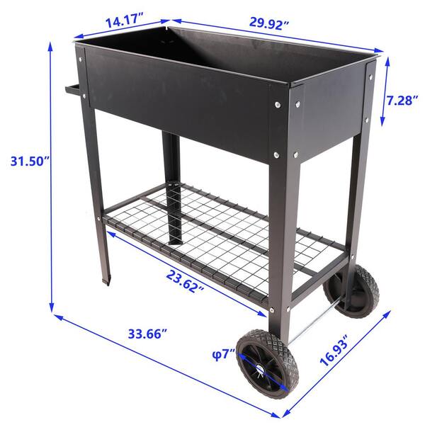 Black Metal Raised Garden Bed Cart with Legs Elevated Tall Planter Box with Wheels for Outdoor Indoors