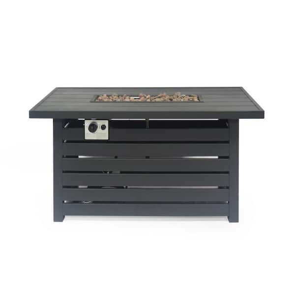 Black Rectangular Iron Outdoor Fire Pit Table for Patio Backyard Garden
