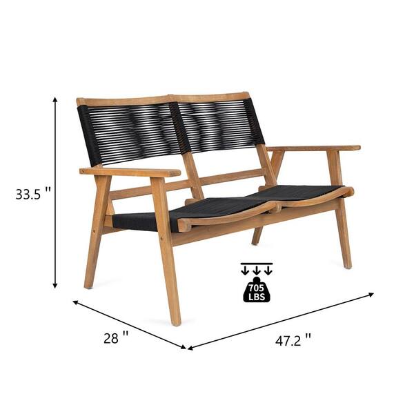Black Rope Furniture acacia Wood Outdoor Patio Lounge Chair with 2 Seat for Backyard Poolside, Garden