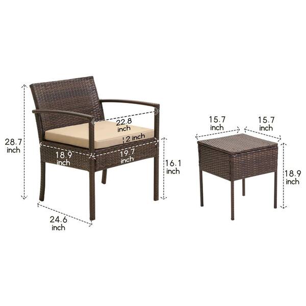 Brown 3-Piece PE Rattan Wicker Patio Conversation Sectional Seating Set with Yellow Cushions, Patio Sectional Sofa Couch
