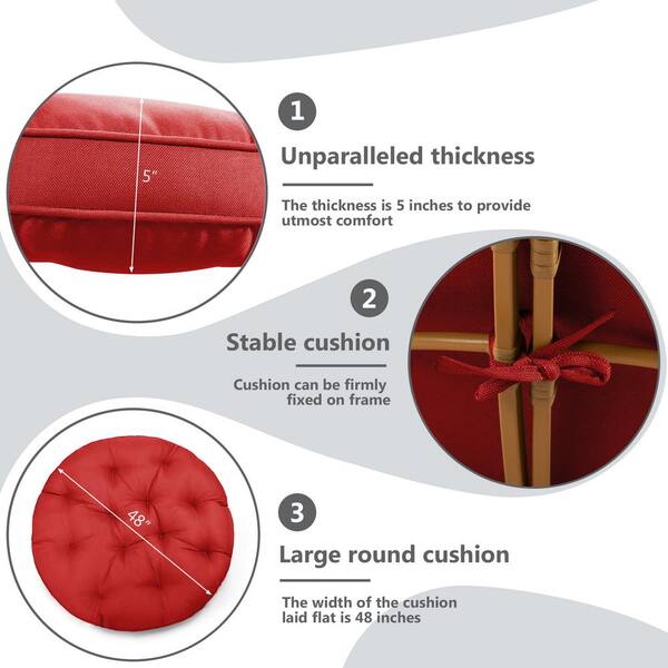Brown Wicker Outdoor Patio Swivel Papasan Lounge Chair with Red Cushion