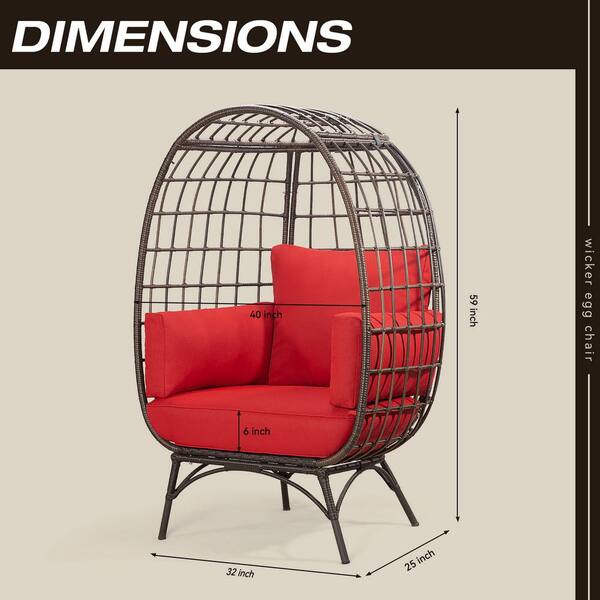 Brown Wicker PE Rattan Chair Steel Frame Outdoor Patio Egg Chair with Red Cushion for Patio, Living Room