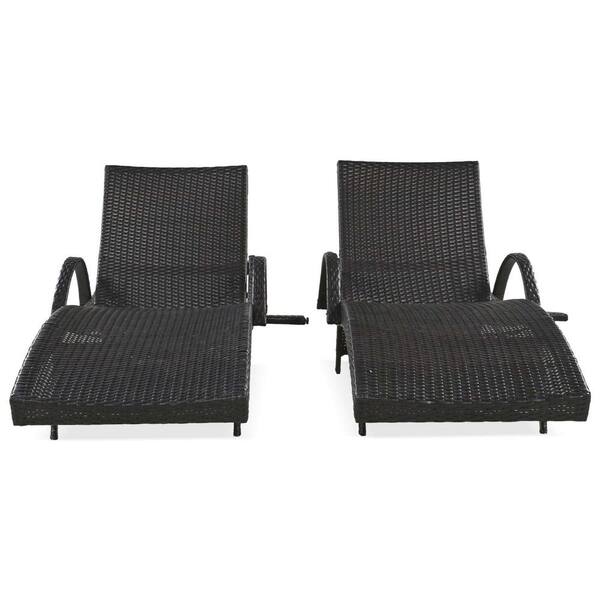 Dark Brown Outdoor Wicker Chaise Lounge Chairs with 5-Level Adjustable Backrest Set of 2