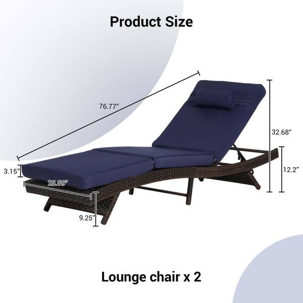 Dark Brown Swivel Wicker Outdoor Lounge Chair with Dark Blue Cushions (2-Pack)
