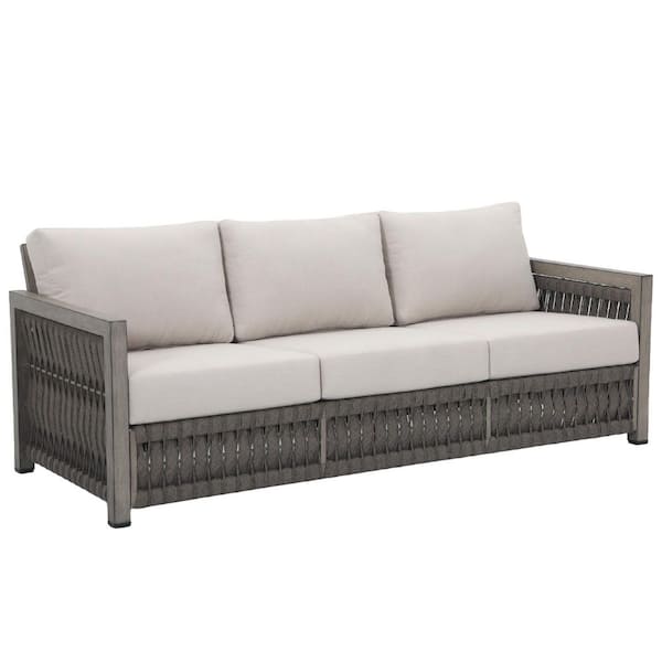 Dark Gray 3-Person Aluminum and Wicker Outdoor Couch with Beige Cushions for Patio, Porch, Garden, Poolside