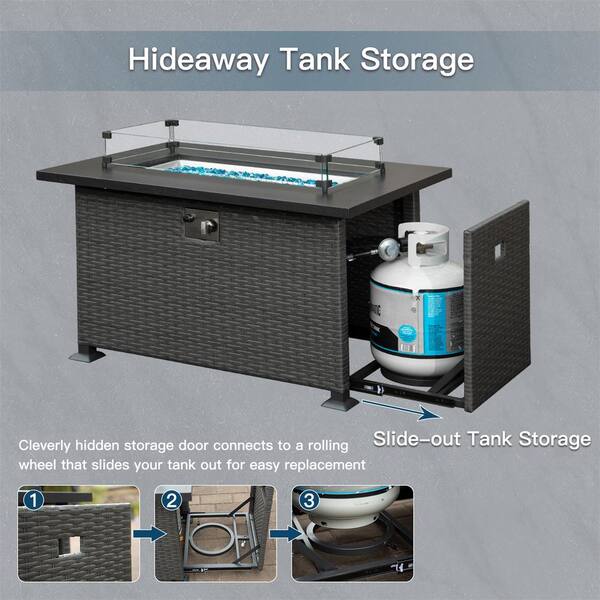 Dark Gray 43.3 in. Fire Pit Table with Glass Wind Guard Outdoor Wicker Gas Fire Pits for Patio Smokeless Fire Pits