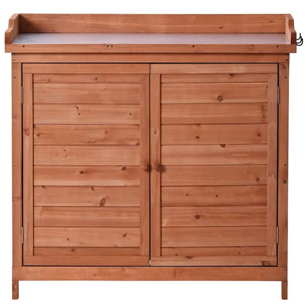 Garden 39 in. W x 37.4 in. H Orange Potting Bench Table Fir Wood Workstation with 2-Tier Shelves and Side Hook