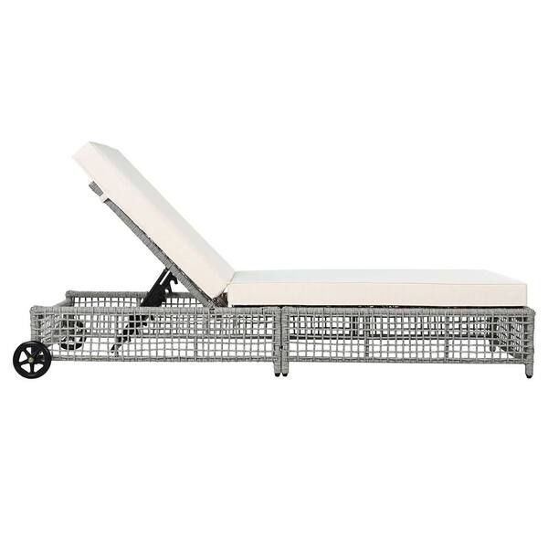 Gray Metal Outdoor Lounge Chair with Beige Cushion and Wheels for Poolside, Backyard (2-Pack)