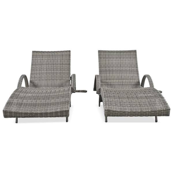 Gray Outdoor Wicker Chaise Lounge Chairs with 5-Level Adjustable Backrest Set of 2