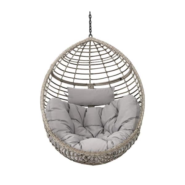 Grey PE Rattan Wicker Iron Outdoor Lounge Chair With Grey Cushion Without Stand