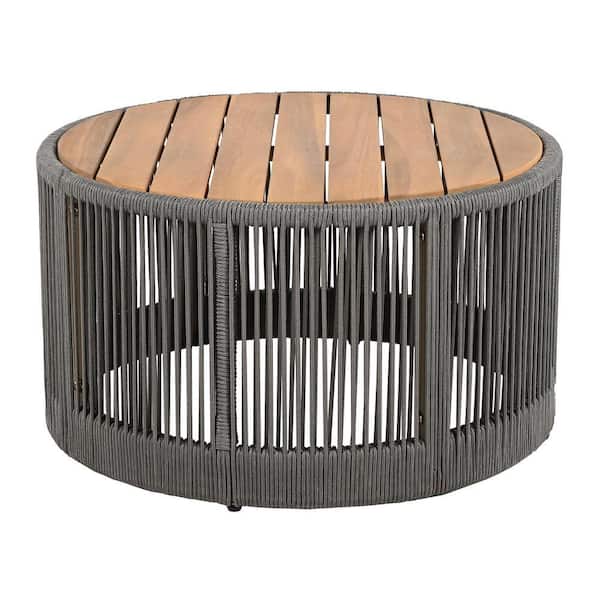Grey and Teak Rectangular Wood and Rope Outdoor Coffee Table