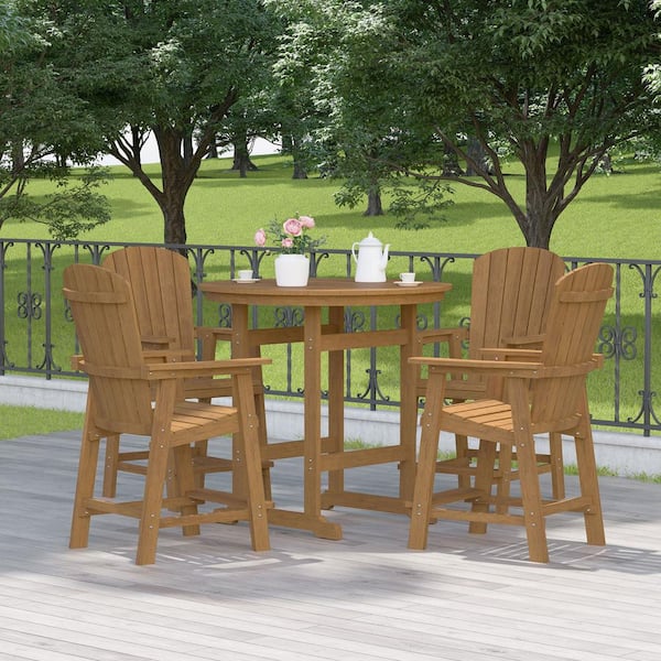 Light Teak HIPS Adirondack Chairs Set of 2 for Outdoor Deck Lawn Pool Backyard