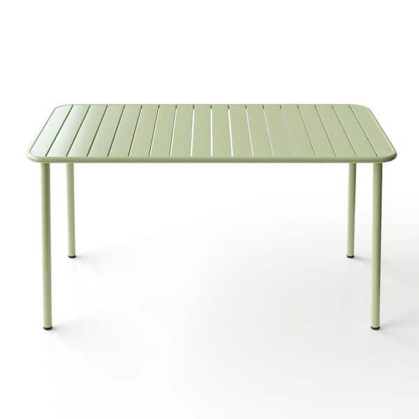 Long Frosty Green Metal and Waterproof Fabric Rectangular Outdoor Dining Table