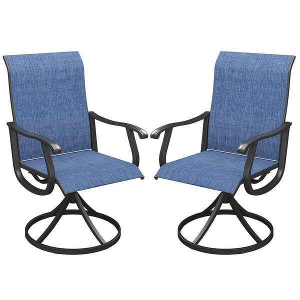 Metal Outdoor Dining Chair, Patio Swivel Chairs 360° Sling Chairs for Garden Backyard, Set of 2, Blue