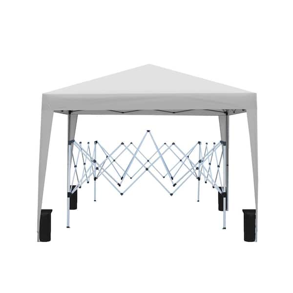 Outdoor 10 ft. x 10 ft. Gray Pop Up Canopy Tent with Zipper, 2 Sidewalls with Windows, 4 Weight sand bags, Carry Bag