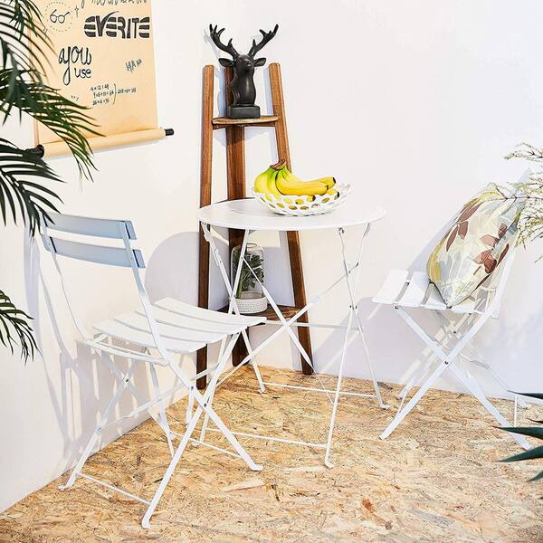 Patio Casual White 3-Piece Metal Foldable Outdoor Bistro Set for Poolside, Patio, Garden and Deck