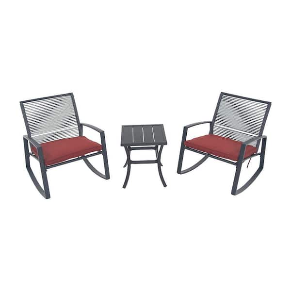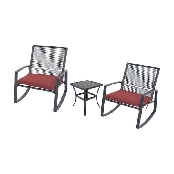 Red 3-Piece Metal Outdoor Bistro Rocking Set with Red Cushions