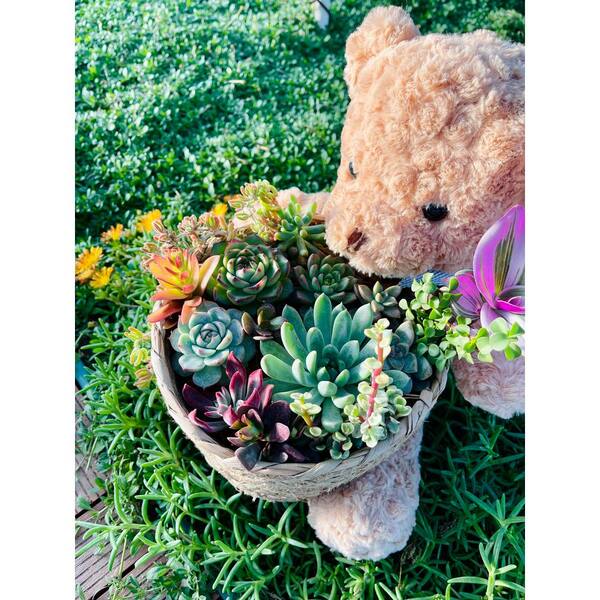 Succulent Cut Flower Planter Brown Teddy Bear Basket for Gardening, Outdoor Use, Decorative Garden Container