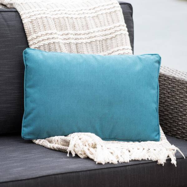 Teal Fabric Rectangular Outdoor Throw Pillow