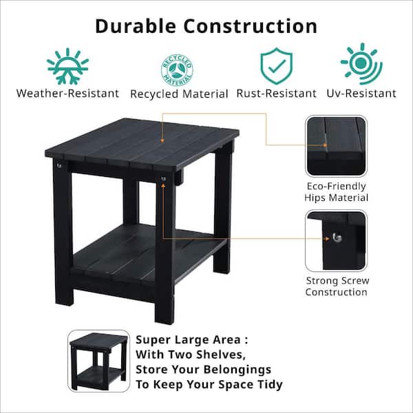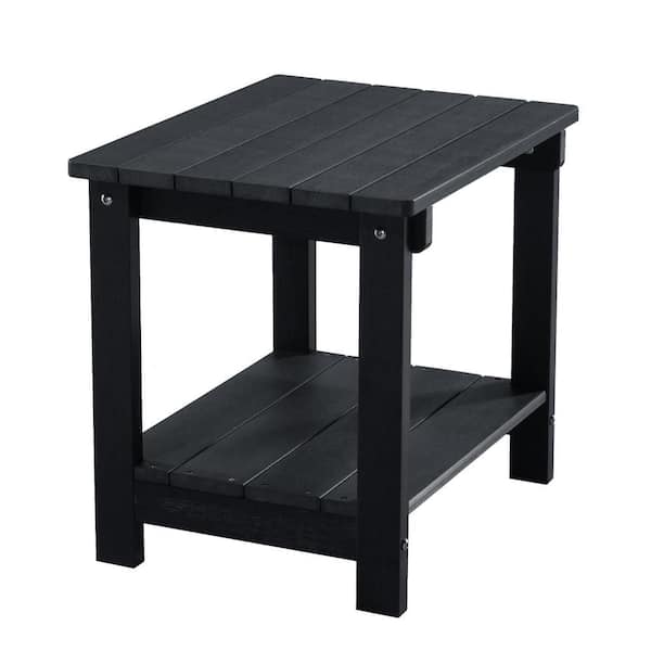 Weather Resistant Outdoor Plastic Wood Rectangular End Table Side Table in Black for Deck, Backyard, Poolside, Beach