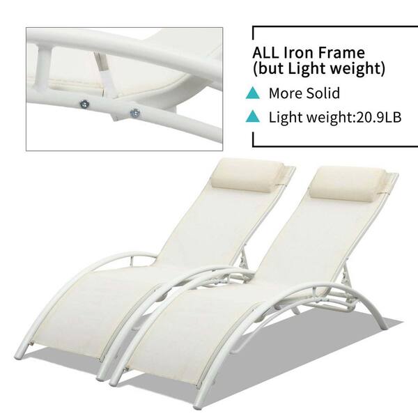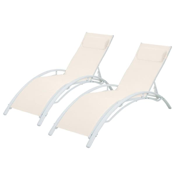 White Adjustable Outdoor Chaise Lounge Chairs With Aluminum Frame for Beach, Backyard, Pools