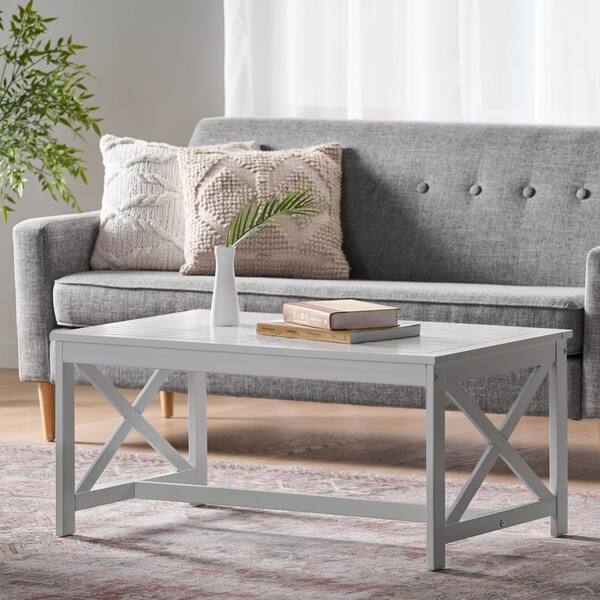 White Rectangular Wood Outdoor Coffee Table Patio Accent Table for Backyard Garden