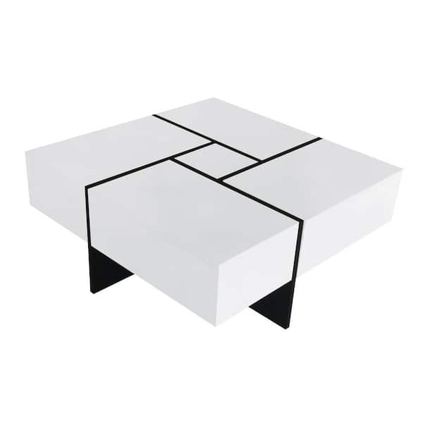 White Square Cocktail Table Coffee Table with 4 Hidden Storage Compartments, Extendable Sliding Tabletop for Living Room