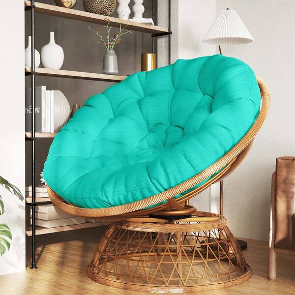 Wicker Outdoor Lounge Chair with Blue Cushion, 360° Swivel Patio Lounge Chair for Balcony Garden
