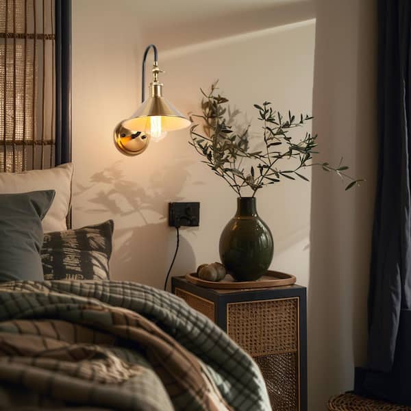 1-Light Brass Gold Modern Wall Sconce, Industrial Bathroom Light Fixture with Metal Bell Shape Shade