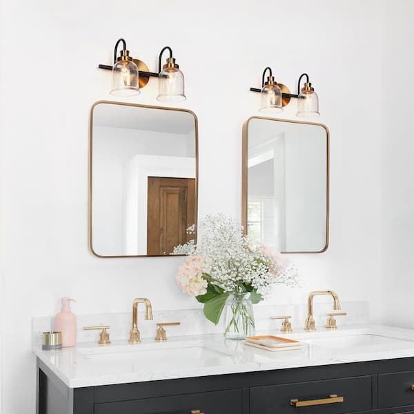 13 in. 2-Light Seeded Glass Bathroom Vanity Light, Modern Brass Plated and Matte Black Bath Light, Linear Light Fixture