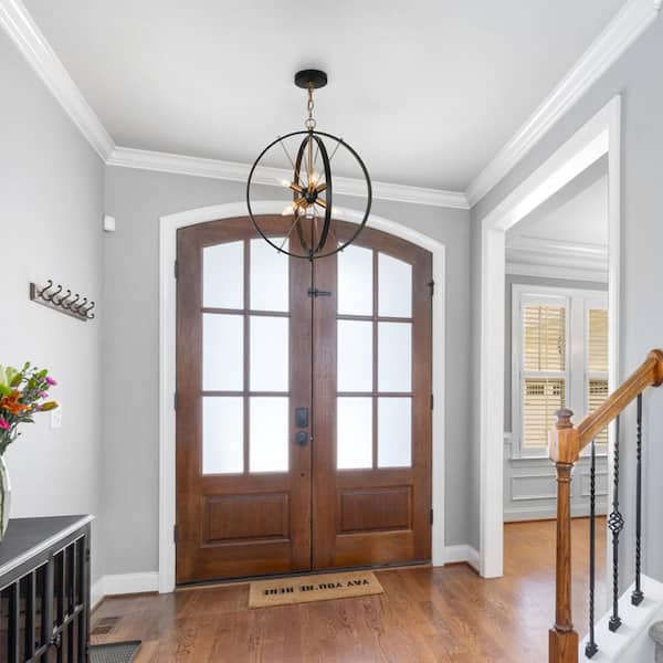 18 in. Modern Farmhouse 6-Light Black Globe Caged Chandelier, Brass-Plated Sputnik Pendant Hanging Light for Dining Room