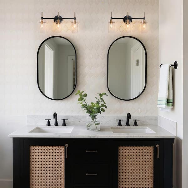 19.5 in. 3-Light Modern Brass Vanity Light, DIY Black Industrial Bathroom Wall Sconce with Cylinder Clear Glass Shades