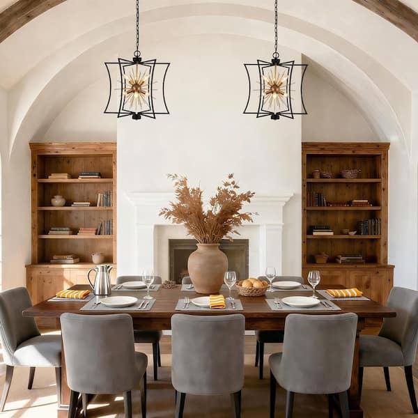 20.5 in. 6-Light Black Kitchen Island Pendant Light, Modern Dining Room Cage Chandelier, Dark Gold Sputnik Chandelier