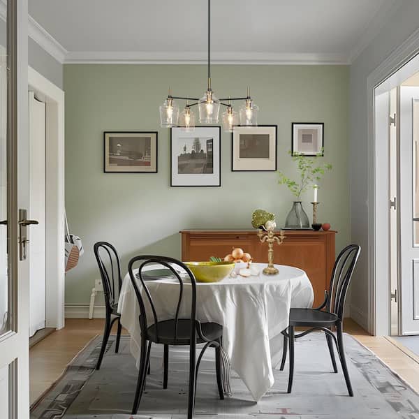 25 in. 5-Light Brass Modern Island Chandelier, Clear Glass Mason Jar Pendant Light, Farmhouse Black Light Fixture