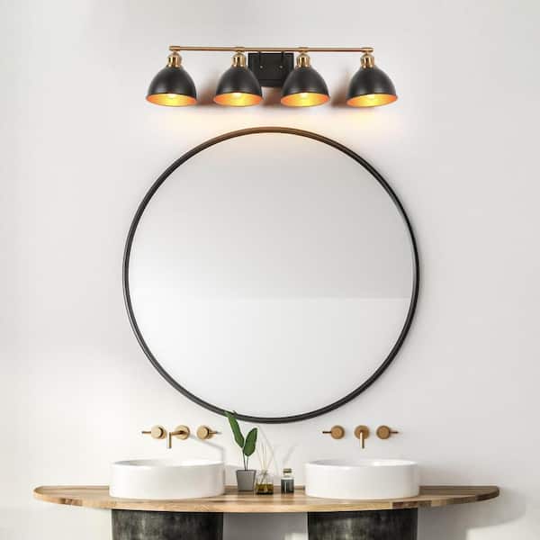 31.5 in. Modern 4-Light Black Bathroom Vanity Light, Industrial Bath Lighting Brass Gold Wall Sconce