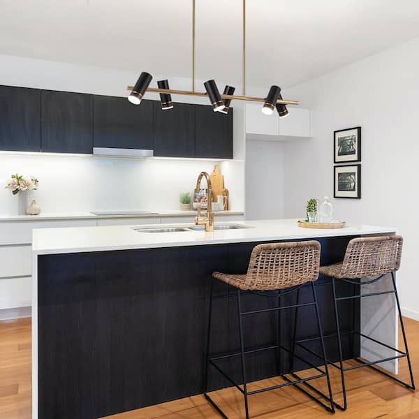 36 in. Modern 6-Light Black Integrated LED Sputnik Chandelier, Brass Gold Pendant Light with Cylinder Shade