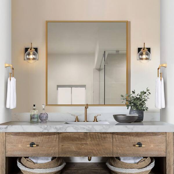 4.5 in. 1-Light Black Bathroom Vanity Light, Globe Clear Glass Bath Lighting, Brass Gold Modern Wall Sconce