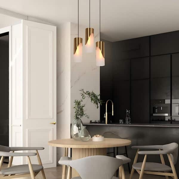 4.7 in. 1-Light Brass Modern Pendant Light, Kitchen Island Pendant Hanging Light, Farmhouse Frosted Glass Light Fixture