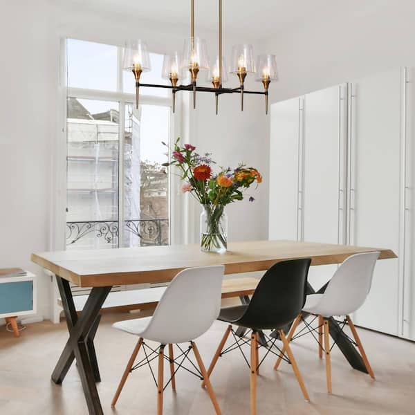 6-Light Modern Brass Gold Chandelier Light, Black Hanging Pendant Linear Hanging Ceiling Light with Seeded Glass