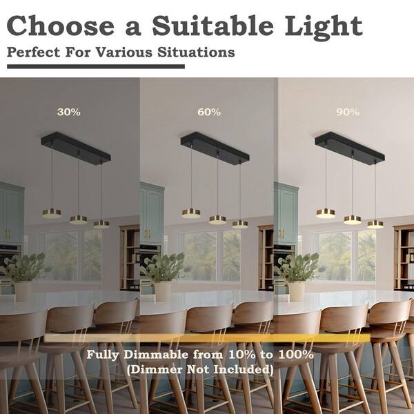 Integrated LED Linear Chandelier, 3-Light Polished Brass Island Pendant Light, Modern Black DIY Dining Room Chandelier