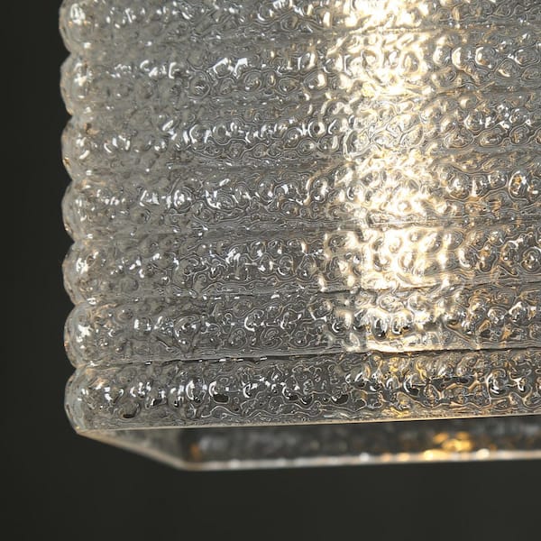 Modern 1-Light Matte Black Pendant Light with Textured Glass, Transitional Square Mini Pendant Hanging Light for Kitchen