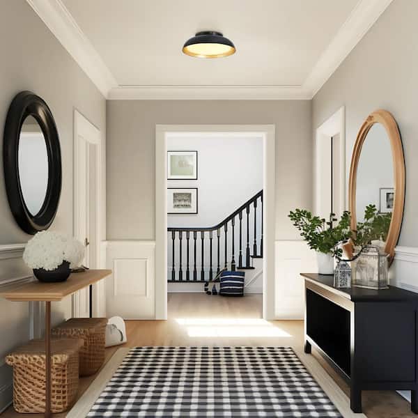 Modern 1-light 16.5 in. Black Dome Integrated LED Flush Mount Light, Ceiling Light with White PC Shade for Hallway