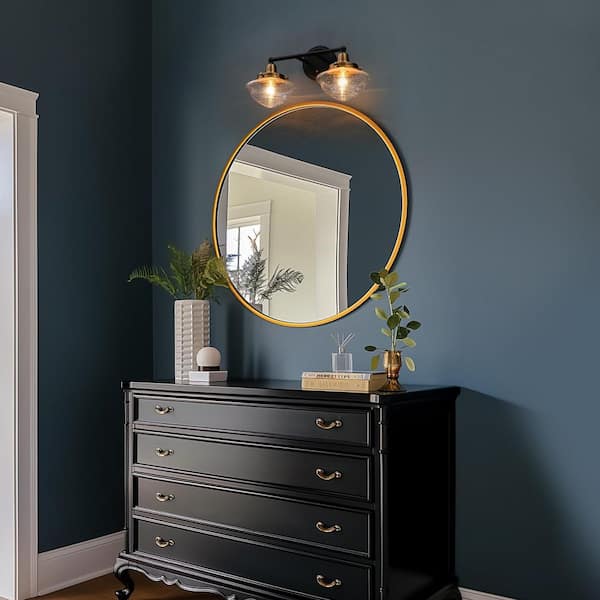 Modern 16.5 in. 2-Light Black Bathroom Vanity Light, Seeded Glass Wall Sconce, Industrial Brass Bath Lighting